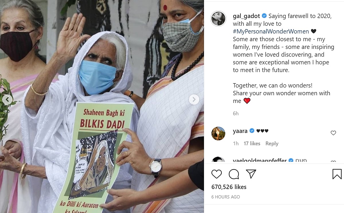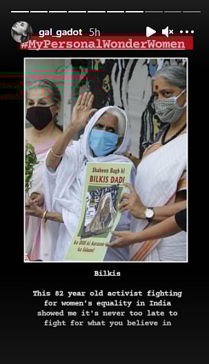 Hollywood actress Gal Gadot, who is basking on the success of her latest film ‘Wonder Woman 1984’, recently shared on Instagram that Shaheen Bagh’s Bilkis Dadi (grandmother) is her personal ‘Wonder Woman’.